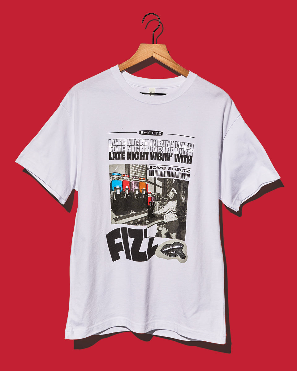Late night vibez, incoming! Add some new DRIP to your wardrobe with this 100%-cotton fizz graphic tee.