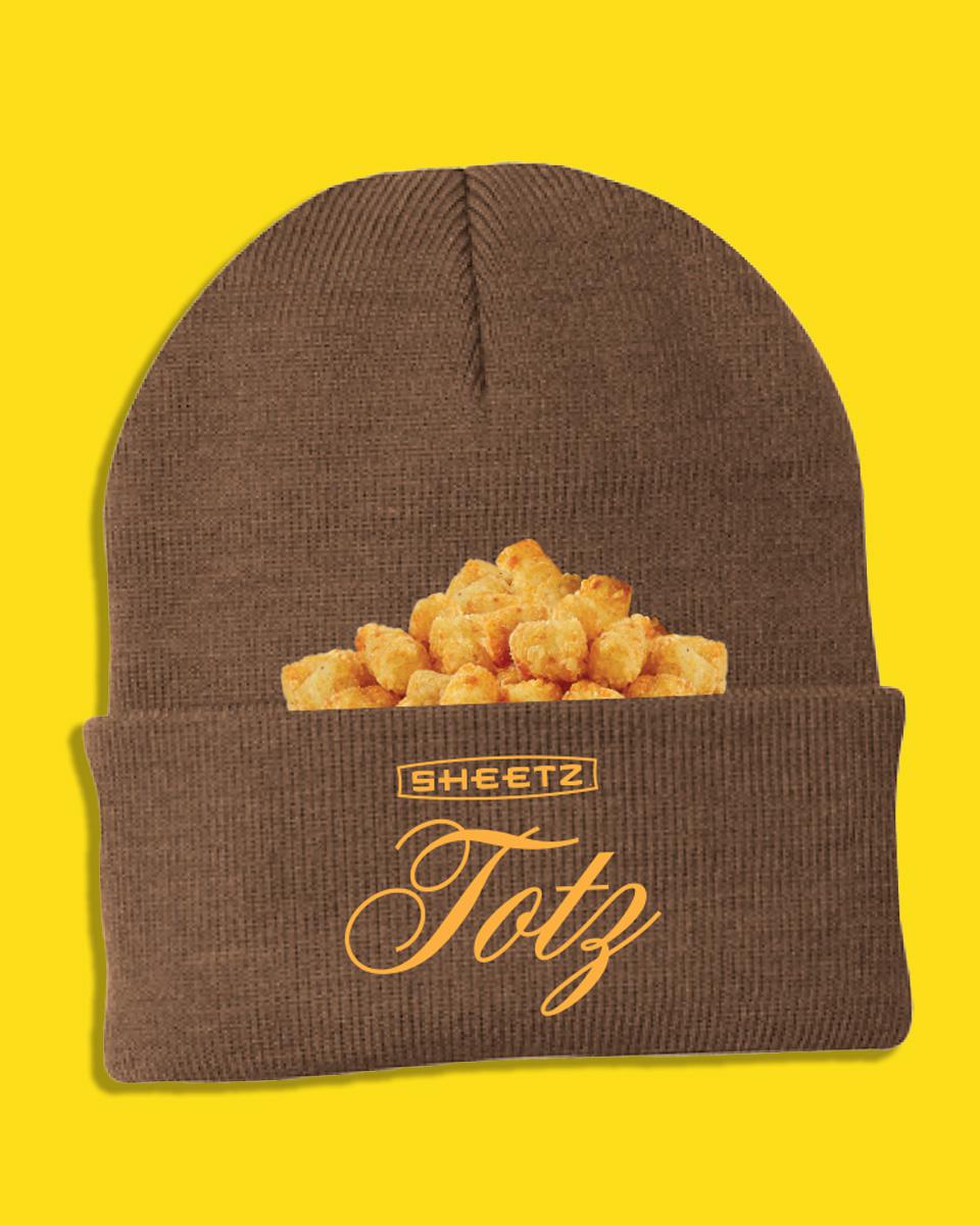 Where you goin'? To get Totz. And with this slick beanie topping your noggin, everybody's gonna know about it.